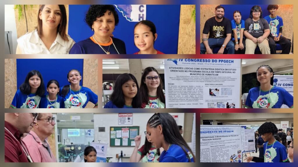 A Rede Municipal de Ensino de Humaitá mais uma vez demonstrou seu compromisso com a valorização da educação integral e o incentivo ao protagonismo estudantil durante o IV Congresso do Programa de Pós-Graduação em Ensino de Ciências e Humanidades (PPGECH), realizado no Instituto de Educação, Agricultura e Ambiente (IEAA/UFAM) entre os dias 11 e 13 de novembro de 2025.