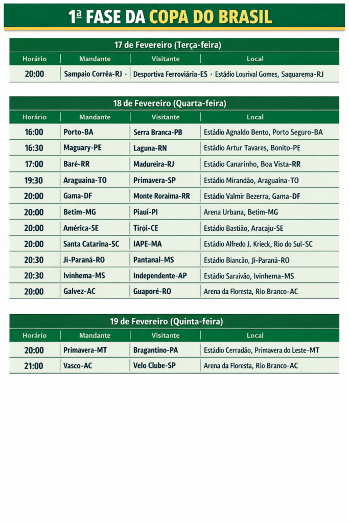 CBF DEFINE DATAS E HORÁRIOS DA 1ª FASE DA COPA DO BRASIL 2026