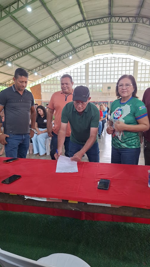 Foto – Notícias da Amazônia: Dedei Lobo assina ordem de serviço para ampliação da Escola Dom Bosco